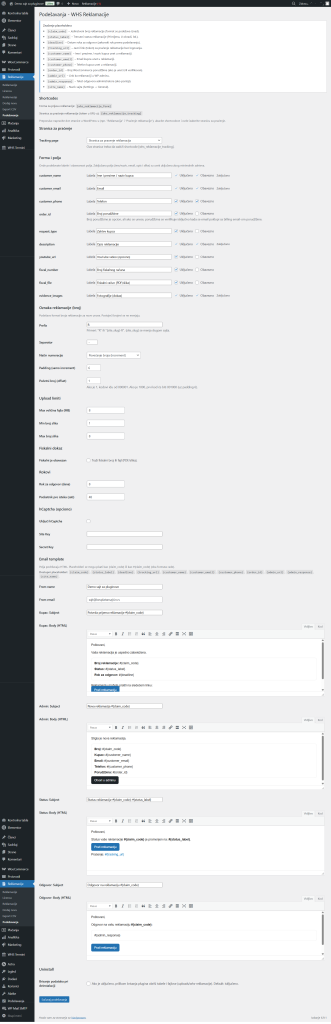 - Podešavanje polja forme: admin može menjati nazive (labele), uključiti/isključiti opcionalna polja i definisati obaveznost (ključna polja ostaju zaključana).